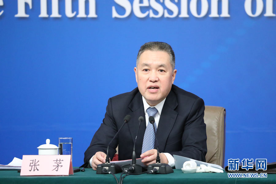 3月10日,十二屆全國人大五次會議新聞中心舉行記者會,邀請國家工商行政管理總局局長張茅就“深化商事制度改革”的相關問題回答中外記者的提問。圖為張茅回答記者提問。新華網/中國政府網?孫韜 攝