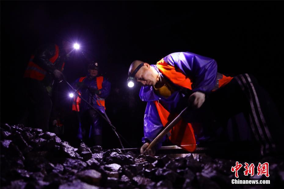 倒春寒的天氣讓江西各地“陰晴不定”。3月19日晚間,位于京九鐵路江西南昌至九江區段,百余名鐵路工人頭頂著燈光在寒雨中進行更換枕木施工作業。文/汪翰 李利群 圖/汪翰