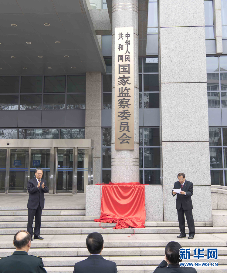 新華社北京3月23日電(記者朱基釵)中華人民共和國國家監察委員會23日揭牌,舉行新任國家監察委員會副主任、委員憲法宣誓儀式。