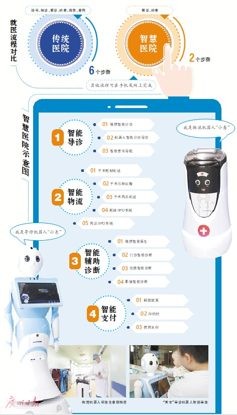 這樣的智能化對患者有多大好處?在田軍章看來,最重要的是徹底改變了患者就醫流程,傳統的就醫流程需要從掛號、候診、看診、檢查、繳費、拿藥六個基本步驟進行,在智慧醫院,患者在醫院只要看診及檢查兩個流程,其他流程可以在手機或者網上完成。