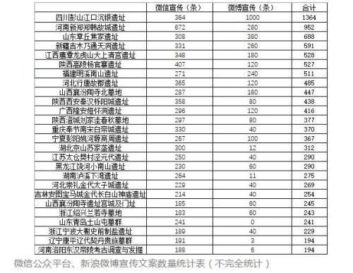 在“2017年度全國(guó)十大考古新發(fā)現(xiàn)”前一天,這篇文章對(duì)26項(xiàng)入圍“2017年度全國(guó)考古十大新發(fā)現(xiàn)”項(xiàng)目的網(wǎng)絡(luò)宣傳文案數(shù)量進(jìn)行了統(tǒng)計(jì)。胡宇煊在統(tǒng)計(jì)了微信公眾平臺(tái)、新浪微博宣傳文案數(shù)量后,對(duì)這26個(gè)項(xiàng)目進(jìn)行排序,并大膽預(yù)測(cè)了2017年度全國(guó)考古十大新發(fā)現(xiàn)的評(píng)選結(jié)果。