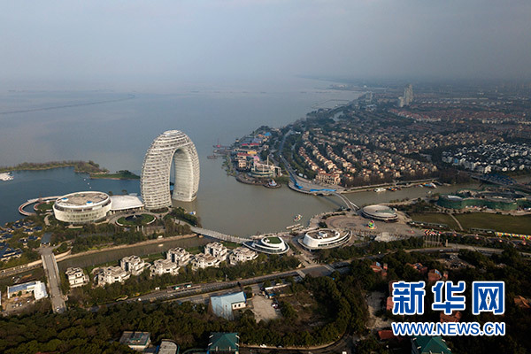 俯瞰浙江湖州太湖旅游度假區(3月21日無人機拍攝)。新華社記者 黃宗治 攝