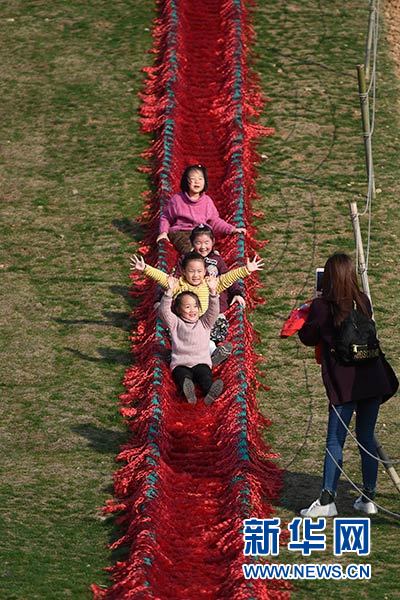 小朋友在湖州市吳興區妙西鎮原鄉小鎮體驗滑草(3月10日攝)。新華社記者 黃宗治 攝