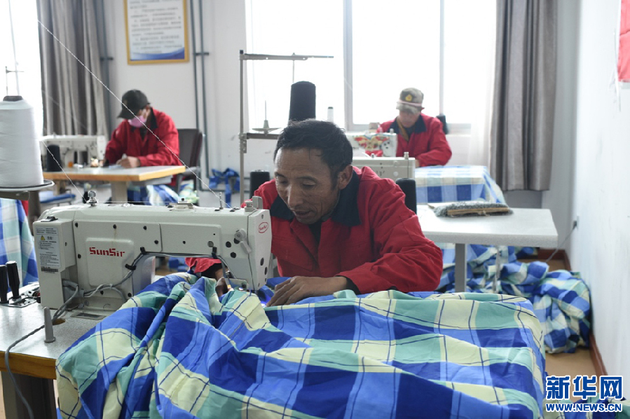 走出五保戶集中供養服務中心,對面就是錯那縣殘疾人就業中心。成立于2016年的殘疾人就業中心目前幫助16名建檔立卡貧困戶殘疾人解決了就業問題。每位殘疾人通過5個月的免費培訓就可以正式上崗,為一些學校制作校服,為各部門制作彩旗、藏裝、窗簾、救災帳篷、旅游特色禮品等。每人每月能拿到2000-3500元不等的工資。