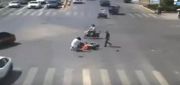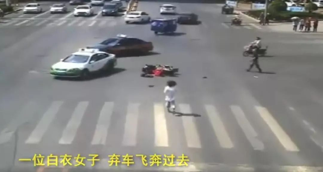 她飛快地跑到摔倒男子身邊