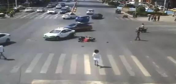 被摩托車壓倒在地無法起身