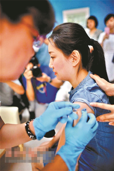 史佳雨在接種HPV9價疫苗。(圖片來源:海南日報)