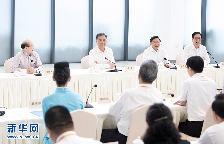 6月6日至7日,中共中央政治局常委、全國政協(xié)主席汪洋在廈門出席第十屆海峽論壇期間,就兩岸經(jīng)濟文化交流合作情況進行調(diào)研。這是6月6日,汪洋與在閩工作的臺灣同胞代表座談。新華社記者 王曄 攝