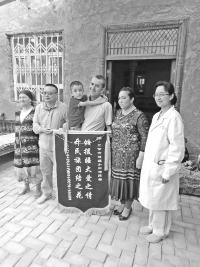 圖為北京援疆醫(yī)生登門看望和田縣布扎克鄉(xiāng)先心病兒童赴京救治后康復(fù)情況,收到當(dāng)?shù)鼐S吾爾族群眾送上的錦旗。本報記者余向東文/圖