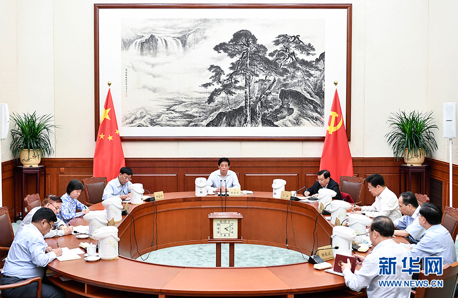 7月16日,全國(guó)人大常委會(huì)黨組在北京召開會(huì)議進(jìn)行集體學(xué)習(xí),學(xué)習(xí)習(xí)近平新時(shí)代中國(guó)特色社會(huì)主義思想,以“中國(guó)共產(chǎn)黨的歷史使命”為主題,圍繞“歷史使命、歷史責(zé)任和我們的歷史擔(dān)當(dāng)”進(jìn)行專題討論。全國(guó)人大常委會(huì)委員長(zhǎng)、黨組書記栗戰(zhàn)書主持并講話。 新華社記者 殷博古 攝