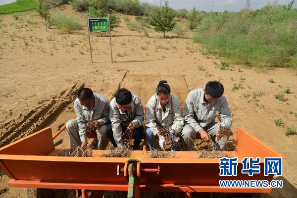 張吉樹介紹說,甘草適合在沙漠里生長,固氮量大,改良沙土的效果很明顯,讓甘草躺著長,可將一棵甘草的治沙面積由0.1平方米擴大到1平方米,這項技術(shù)已推廣到其他沙區(qū),治理面積達220萬畝。
