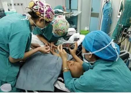 神情專注地給手術(shù)床上的年僅7歲小患者進(jìn)行麻醉。