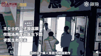 被拽起來后,抹了把眼淚,又跪在了地上,額頭撞地,嘴里不停地哀求醫(yī)生救自己的母親。