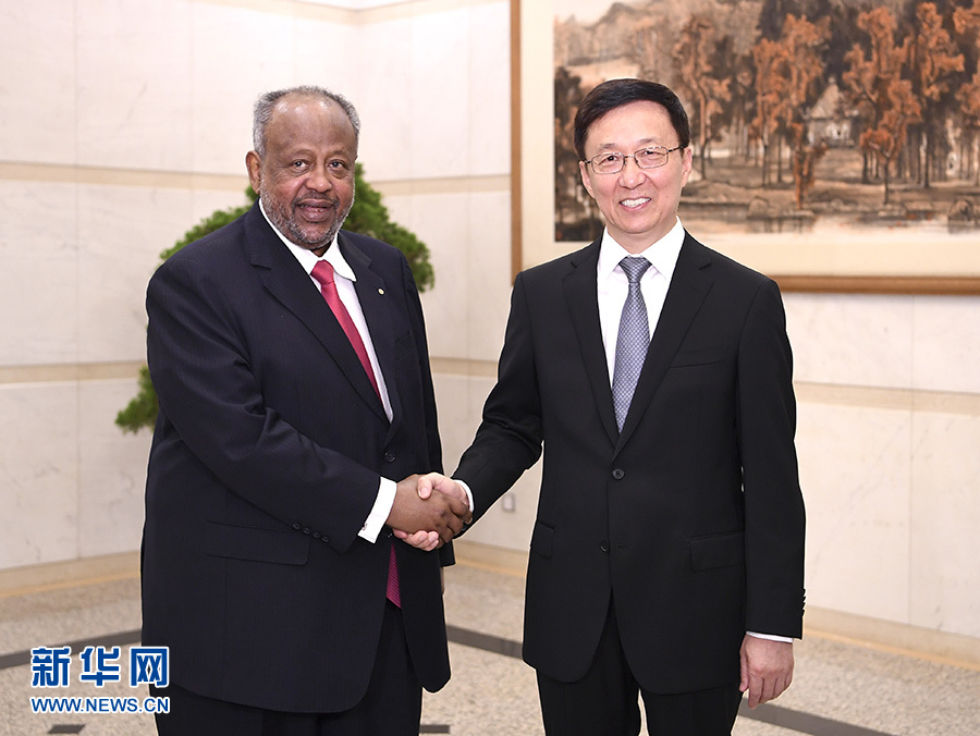 9月2日,國務院副總理韓正在北京釣魚臺國賓館會見吉布提總統蓋萊。 新華社記者 燕雁 攝