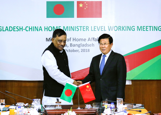 國(guó)務(wù)委員、公安部部長(zhǎng)趙克志10月26日在達(dá)卡與孟加拉國(guó)內(nèi)政部部長(zhǎng)阿薩杜扎曼·汗舉行會(huì)談。