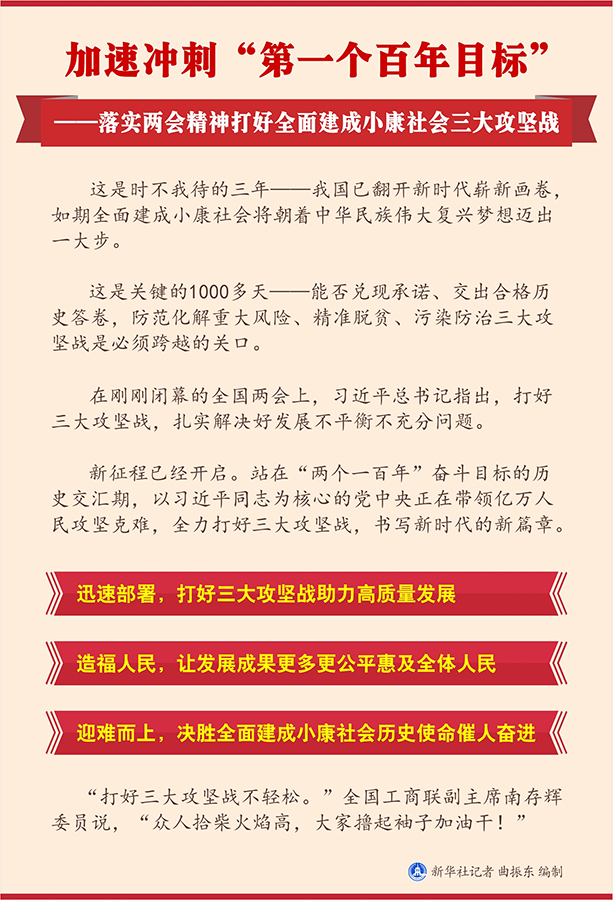 新華社北京3月29日電? 題:加速?zèng)_刺“第一個(gè)百年目標(biāo)”——落實(shí)兩會(huì)精神打好全面建成小康社會(huì)三大攻堅(jiān)戰(zhàn)