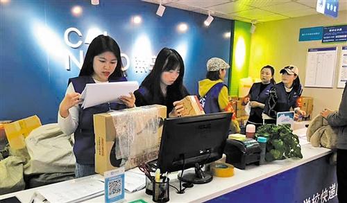 左圖 四川外國(guó)語大學(xué)綜合物流服務(wù)中心內(nèi),工作人員精準(zhǔn)記錄著快遞末端的流通信息。