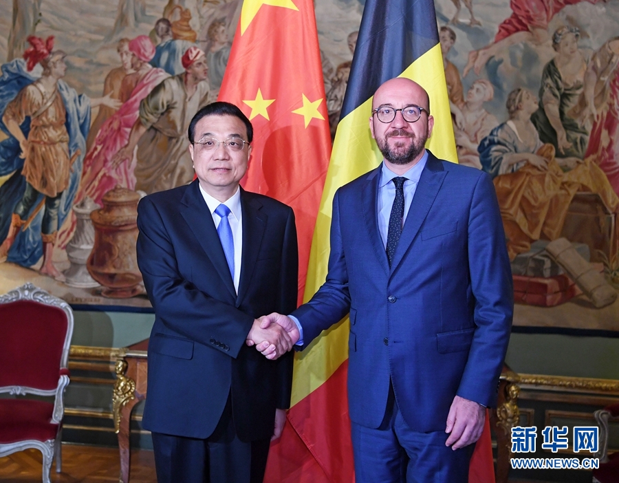 當地時間4月9日上午,國務院總理李克強在布魯塞爾埃格蒙宮會見比利時首相米歇爾。新華社記者 張領 攝