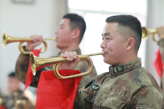 “再來一遍。”韓軍杰笑得有些不好意思,但絲毫沒有停手的樣子。他享受吹響軍號的那一刻,盡管只要短短十幾秒,兩腮就會酸痛。好在經過一段時間,吹出音已經不是問題,從練習發聲到練習音準,他期待著下一個飛躍。