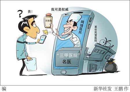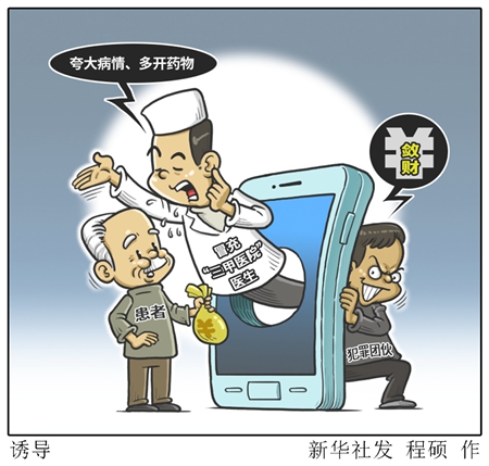 “新華視點”記者追蹤調(diào)查發(fā)現(xiàn),該犯罪團伙把普通民營醫(yī)院包裝成擁有“名醫(yī)”的“三甲醫(yī)院”,通過搜索競價排名尋找病患對象,再雇用沒有行醫(yī)資質(zhì)的“醫(yī)生”誘導其接受高收費治療,甚至開出許多對病情毫無作用的藥物,從而達到斂財?shù)哪康摹?/p>