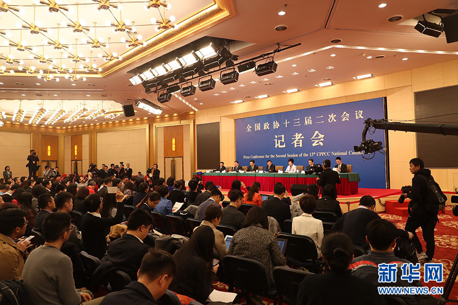 全國(guó)政協(xié)十三屆二次會(huì)議3月5日15:00在梅地亞中心多功能廳舉行記者會(huì),邀請(qǐng)5位全國(guó)政協(xié)委員就“打贏防范化解重大風(fēng)險(xiǎn)、精準(zhǔn)脫貧、污染防治三大攻堅(jiān)戰(zhàn)”回答記者提問(wèn)。圖為記者會(huì)現(xiàn)場(chǎng)。新華網(wǎng)/中國(guó)政府網(wǎng) 劉廈 攝