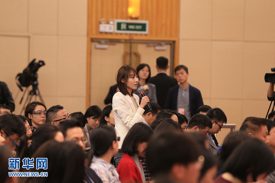 全國政協十三屆二次會議3月5日15:00在梅地亞中心多功能廳舉行記者會,邀請5位全國政協委員就“打贏防范化解重大風險、精準脫貧、污染防治三大攻堅戰”回答記者提問。圖為中央廣播電視總臺央視記者提問。新華網/中國政府網 劉廈 攝