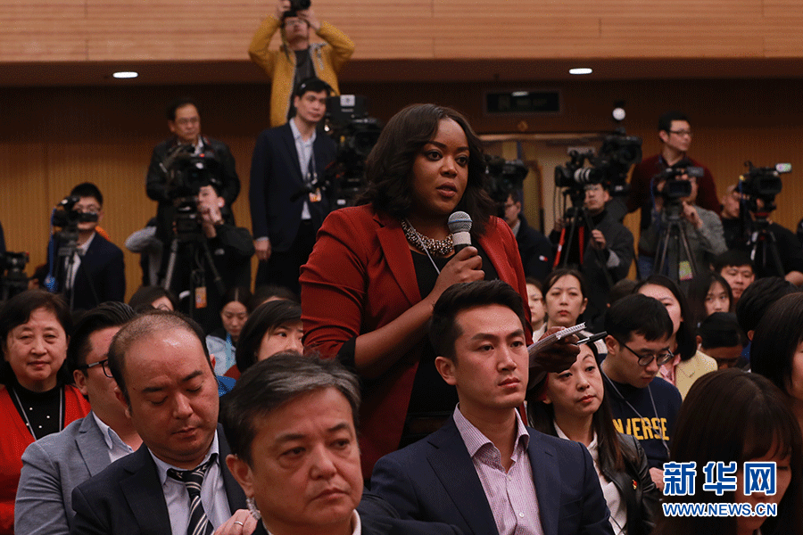 全國政協(xié)十三屆二次會議3月6日下午在梅地亞兩會新聞中心舉行記者會,邀請5位全國政協(xié)委員就“優(yōu)化營商環(huán)境、促進(jìn)民營經(jīng)濟(jì)高質(zhì)量發(fā)展”回答記者提問。圖為中國國際電視臺記者提問。新華網(wǎng)/中國政府網(wǎng)?馬娟 攝