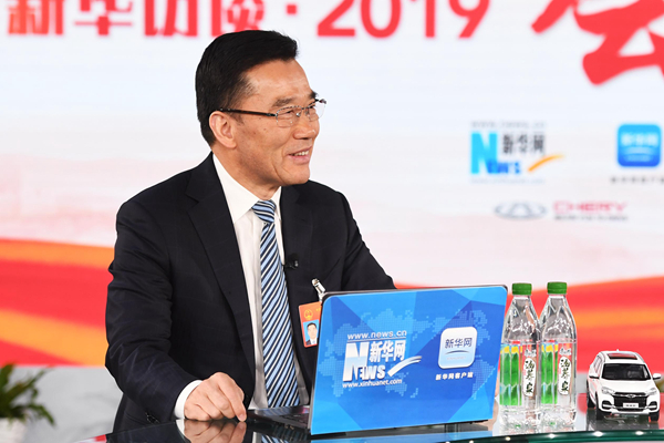 3月8日,全國人大代表、明陽智慧能源董事長張傳衛(wèi)做客新華網(wǎng)。新華網(wǎng) 李相博 攝