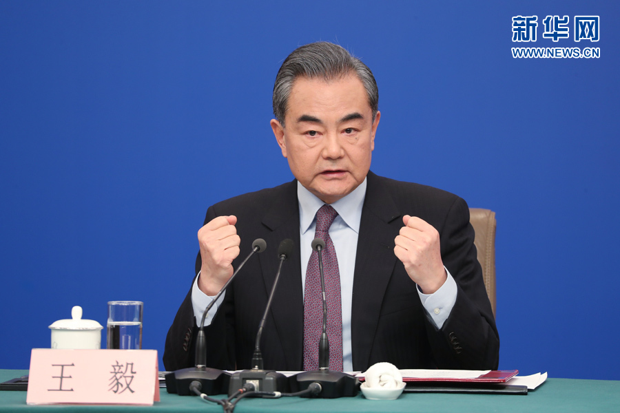 十三屆全國人大二次會議新聞中心3月8日10時在梅地亞中心新聞發布廳舉行記者會,邀請國務委員兼外交部長王毅就“中國外交政策和對外關系”相關問題回答中外記者提問。圖為王毅回答記者提問。新華網/中國政府網 陳杰 攝