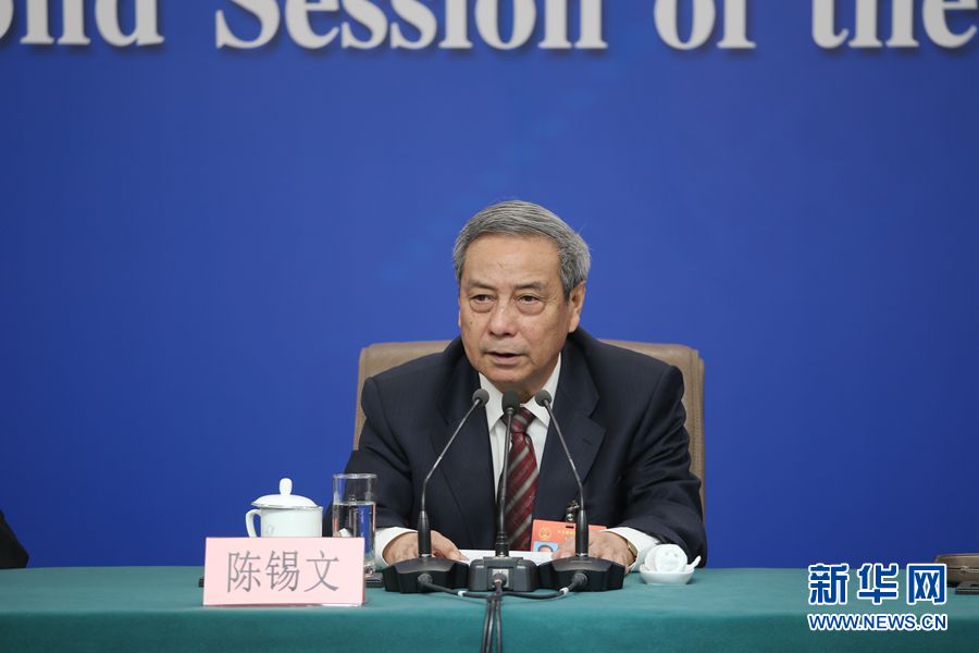 十三屆全國人大二次會議新聞中心3月9日在梅地亞中心新聞發(fā)布廳舉行記者會,邀請全國人大農(nóng)業(yè)與農(nóng)村委員會主任委員陳錫文、全國人大財政經(jīng)濟委員會副主任委員烏日圖、全國人大常委會法制工作委員會副主任劉俊臣、全國人大常委會法制工作委員會副主任許安標、全國人大環(huán)境與資源保護委員會委員程立峰就“人大立法工作”相關(guān)問題回答記者提問。圖為全國人大農(nóng)業(yè)與農(nóng)村委員會主任委員陳錫文。新華網(wǎng)/中國政府網(wǎng) 劉廈 攝