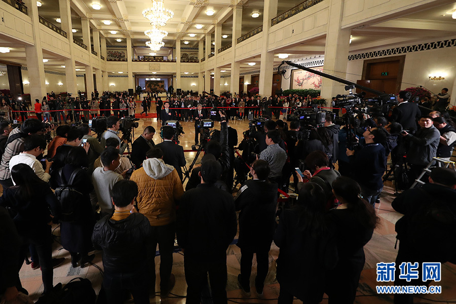 全國政協十三屆二次會議3月13日上午9:30在人民大會堂舉行閉幕會。圖為全國政協委員在“委員通道”接受采訪。新華網/中國政府網 陳杰 攝