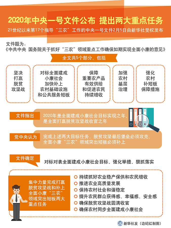 2020年中央一號文件公布 提出兩大重點任務