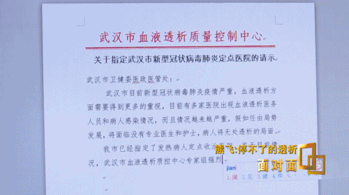 武漢市血液透析質量控制中心主任 熊飛:這些病人訴求很簡單,能有地方透析。但隨著疫情發(fā)展,對我們醫(yī)生的壓力和考驗越來越大。讓你在非感染區(qū)透析會導致其他感染,這就違反了我的底線原則。不讓你透析,一個活生生的生命,所以我們當時壓力很大。我就把病人的數(shù)據(jù)提交給上級部門,告訴他有多少病人如果不透析,超過多長時間可能會面臨著死亡,領導也重視這個問題。