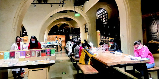 ▲3月17日,復業半個月后,西寧幾何書店里人氣漸旺。本報記者呂雪莉攝