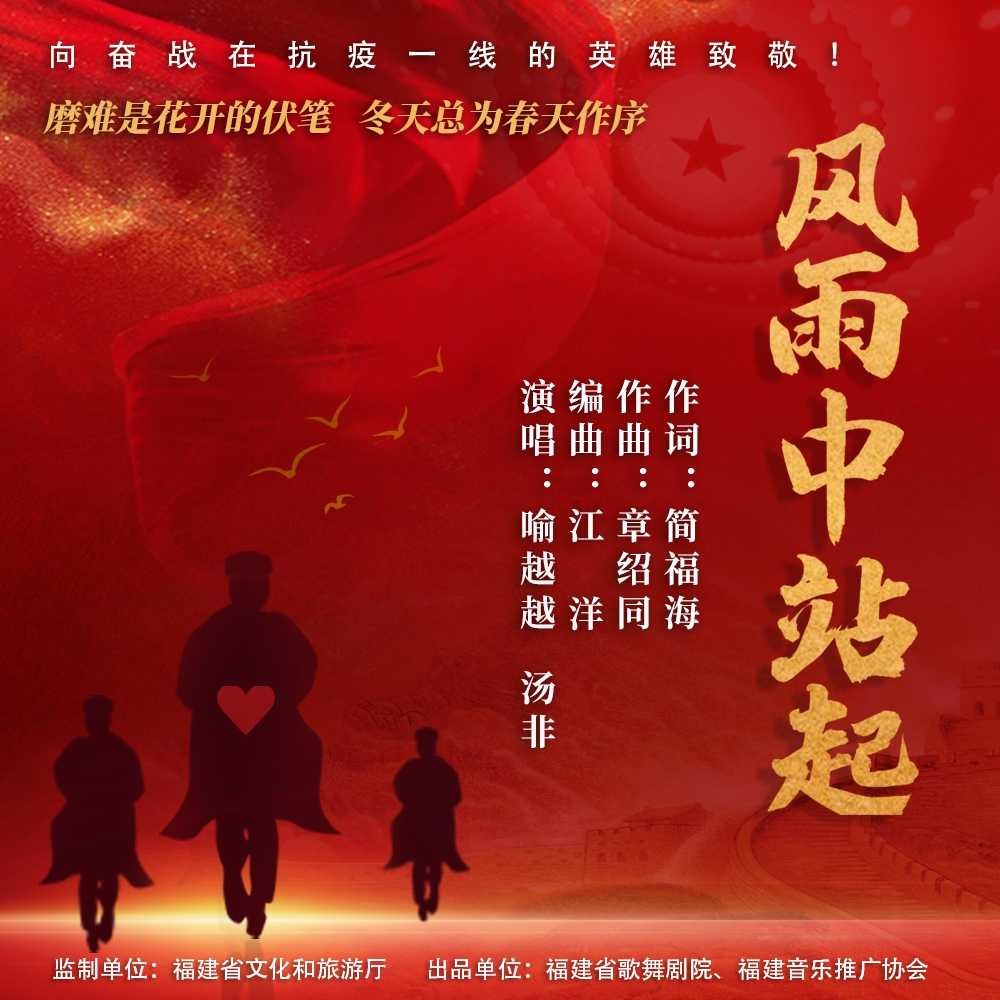 近日,由簡福海作詞,著名作曲家章紹同作曲,知名音樂制作人江洋編曲,著名青年歌唱家喻越越、著名青年歌唱家湯非聯(lián)袂獻(xiàn)聲的公益歌曲《風(fēng)雨中站起》正式上線。該歌曲由福建省文化和旅游廳監(jiān)制,福建省歌舞劇院和福建音樂推廣協(xié)會(huì)出品。