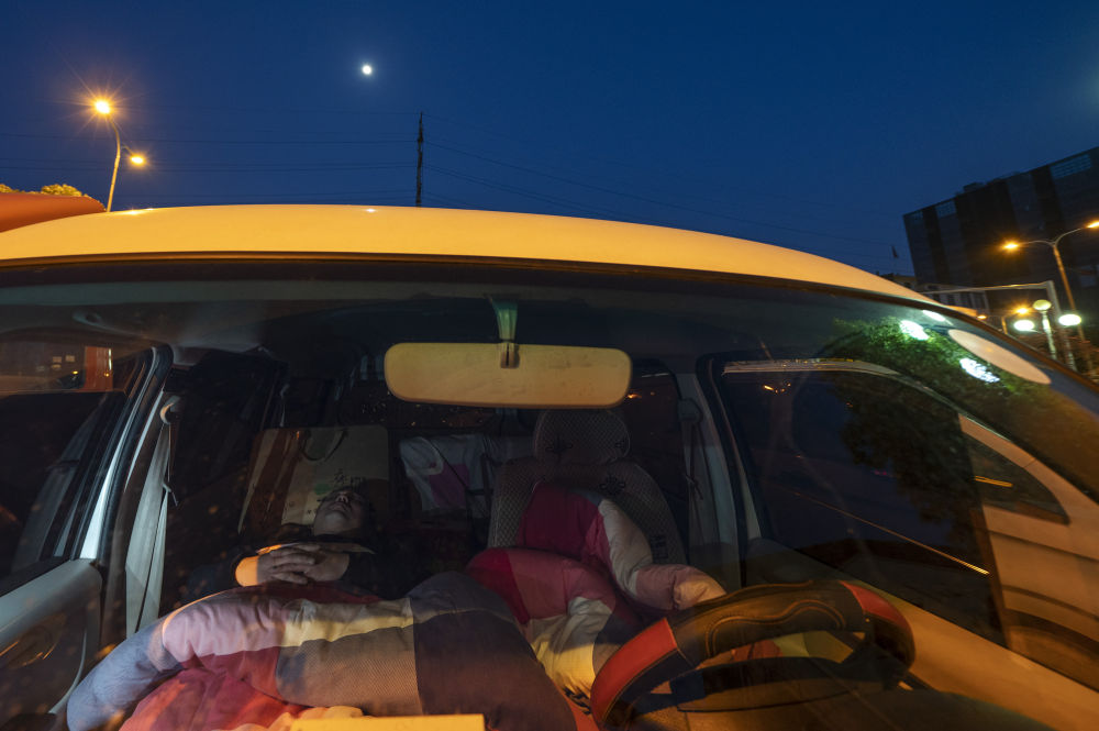 ↑3月7日,入夜之后,馬增辰在自己的面包車上進(jìn)入了夢鄉(xiāng)。此時,一輪明月爬上了半空。