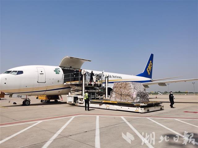 10時20分,在武漢天河機場貨運停機坪,記者看到等待運至機艙內(nèi)的捐贈物資上都張貼著“千里為鄰,戰(zhàn)疫必勝”的標(biāo)語。