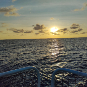 1月1日,在中国南沙仙宾礁附近海域,海警浮鹰舰迎接新年的日出。新华社记者陆钰摄