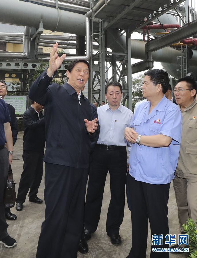 5月24日至28日,中共中央政治局常委、全國人大常委會委員長栗戰書在河南檢查大氣污染防治法實施情況。這是5月25日,栗戰書在安陽鋼鐵集團檢查提標治理項目。新華社記者丁林攝
