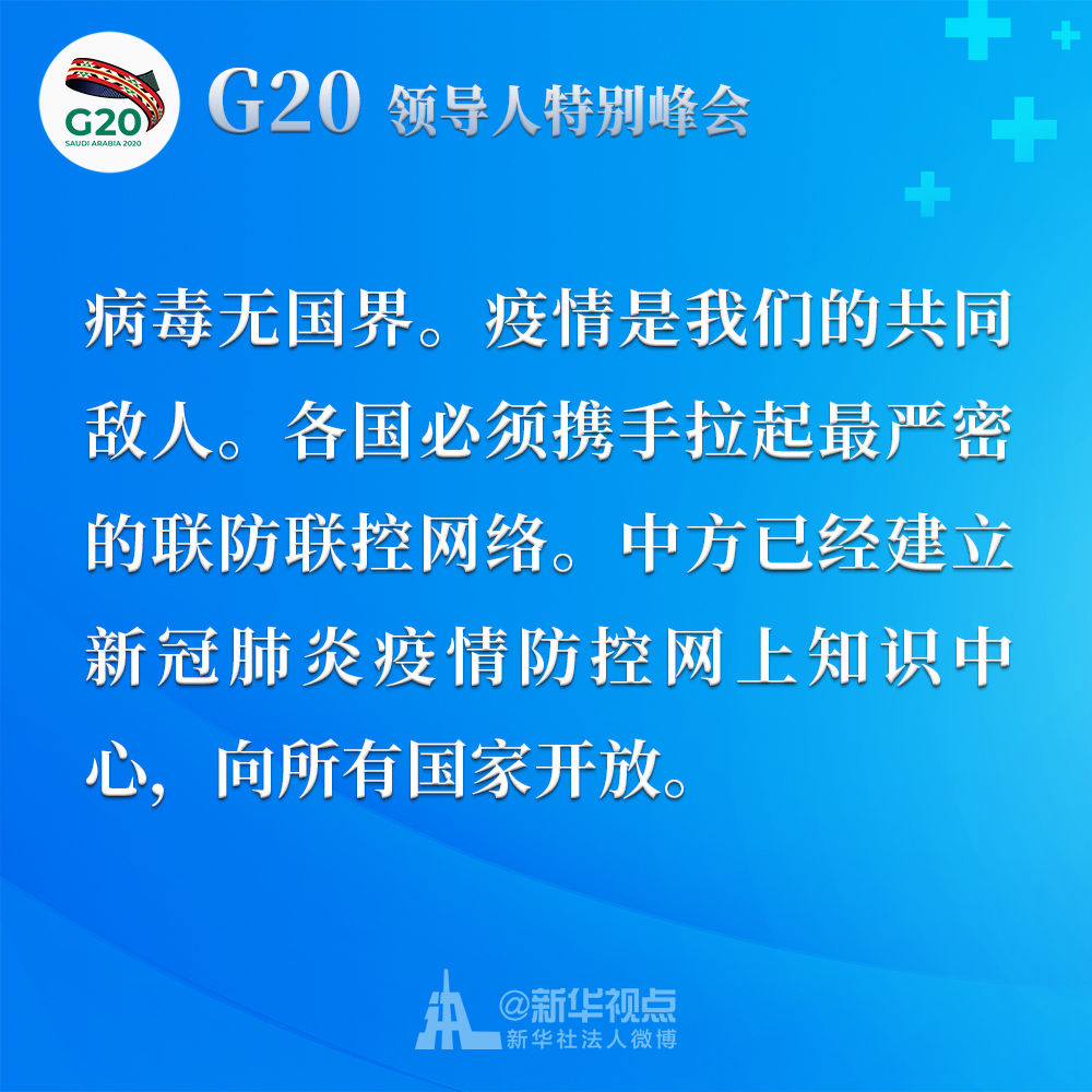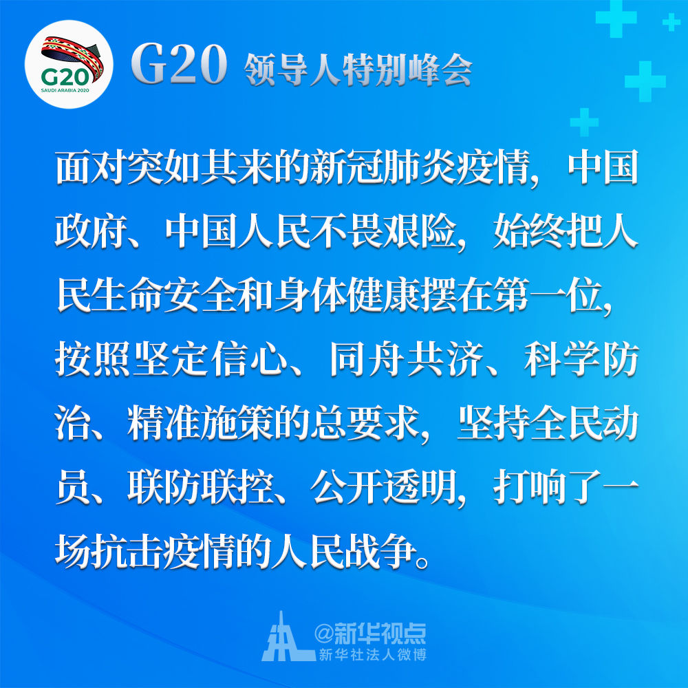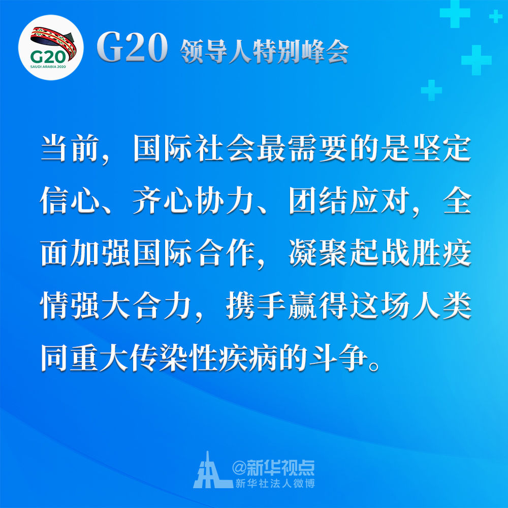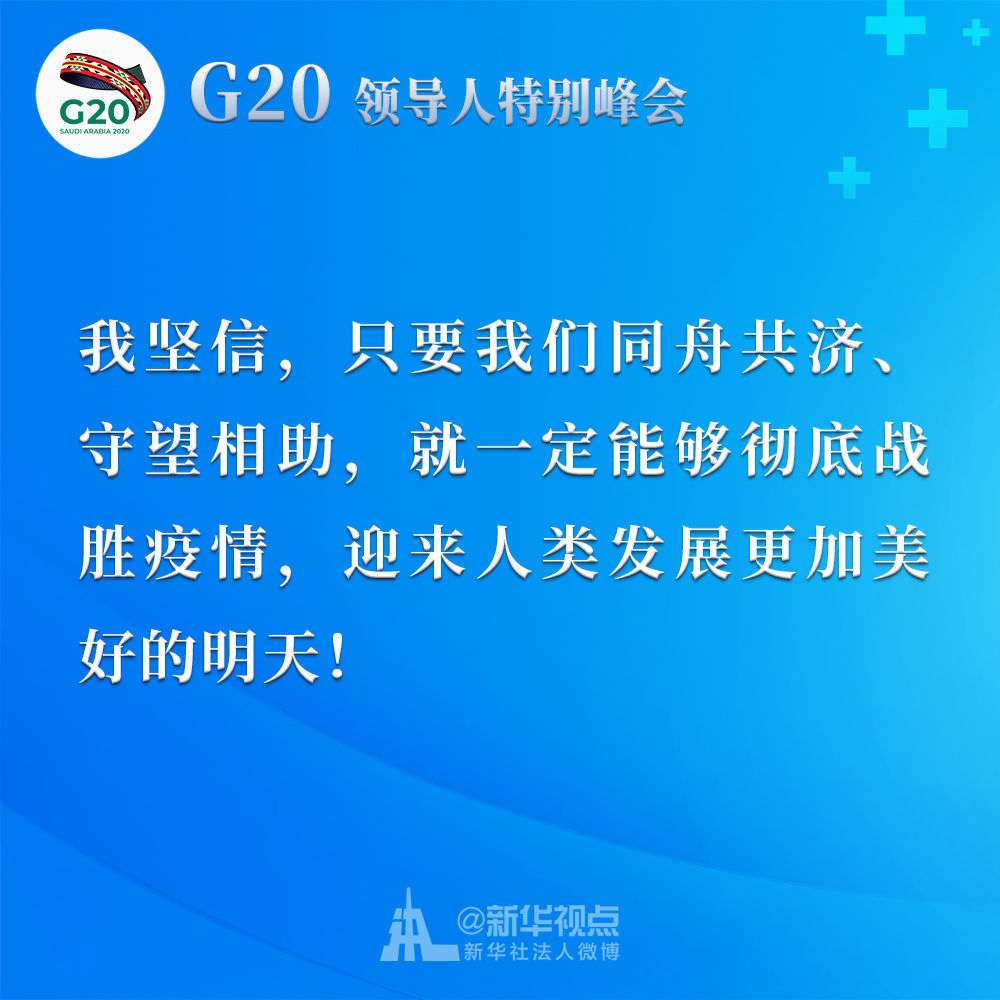 習(xí)近平在二十國(guó)集團(tuán)領(lǐng)導(dǎo)人應(yīng)對(duì)新冠肺炎特別峰會(huì)上重要講話(huà)金句↓