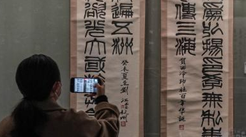 3月21日,石家庄市民在河北博物院举办的“镜·相——中国古代铜镜展”现场参观拍照。