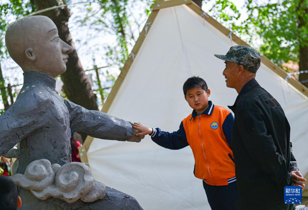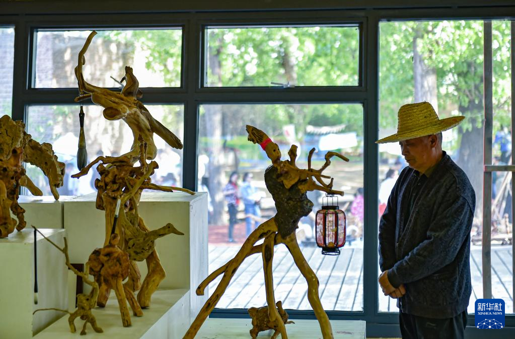 这是4月15日拍摄的“2023下苑艺术生活季”活动现场的一个雕塑作品。
