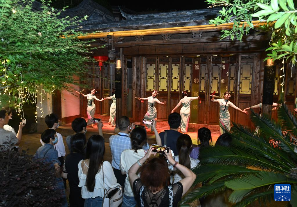 5月18日,观众在福州市三坊七巷历史文化街区参观沉浸式实景演出。