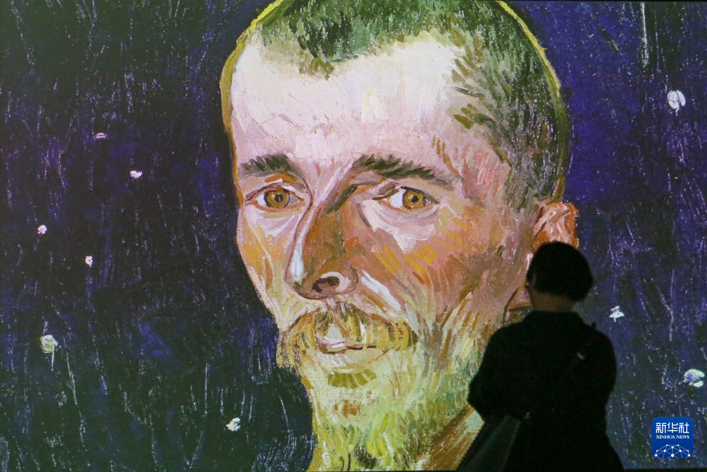 7月16日晚,参观者在参观“梵高再现”光影展。