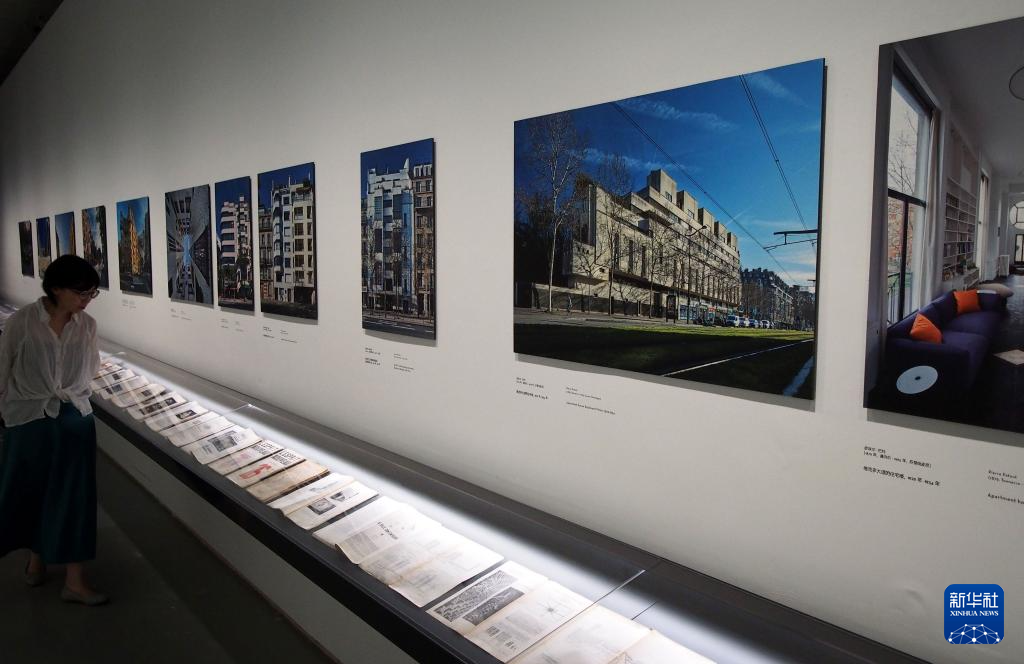 7月21日,一位观众在上海当代艺术博物馆参观“摩登巴黎”展的建筑设计展品。