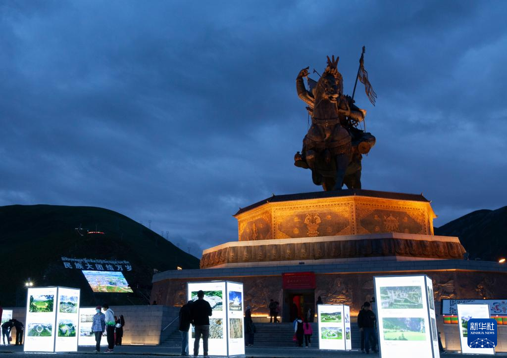 7月24日,人们在青海玉树格萨尔广场参观2023首届中国野生动物摄影大展。
