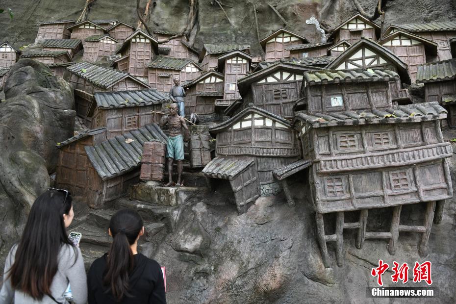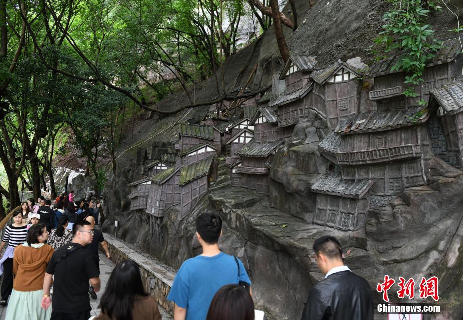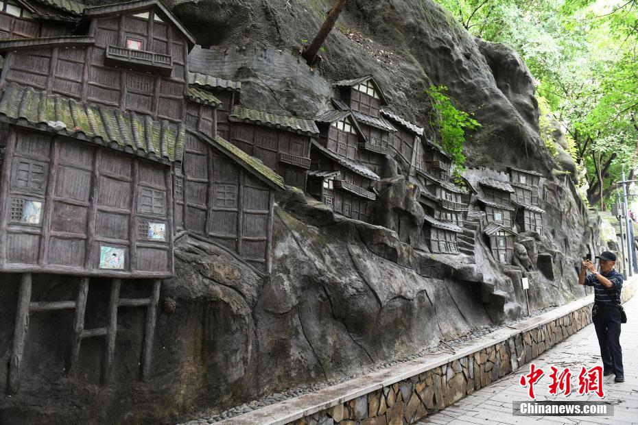 10月7日,重庆半山崖线步道一峭壁上的巨型艺术浮雕,吸引市民前往打卡。据了解,该浮雕以佛图关公园的现场山形及崖壁后期喷浆地表为创作原型基底,画面中将崖壁上的吊脚楼、屋舍、背夫爬坡上坎、商贩沿街叫卖、马帮载货谋取营生等融为一体,市民行走于此仿佛穿越古今。