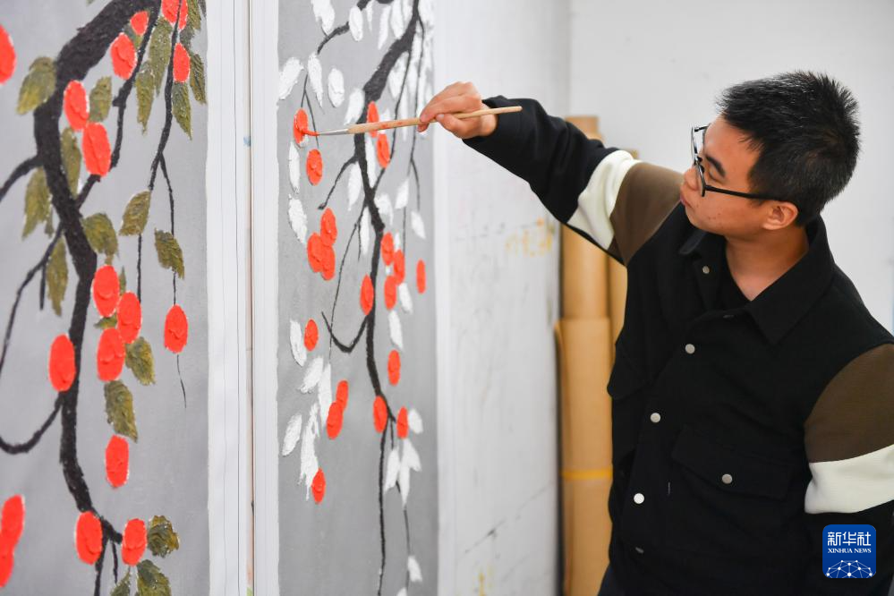 11月8日,在湖南省浏阳市小河乡乌石村,农民在画室绘制油画。