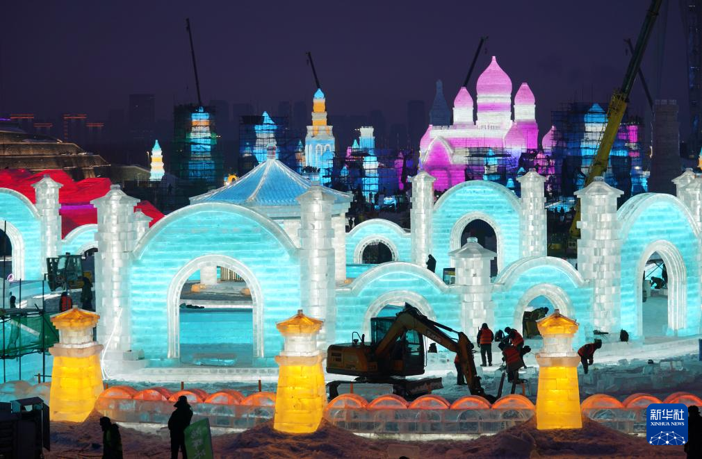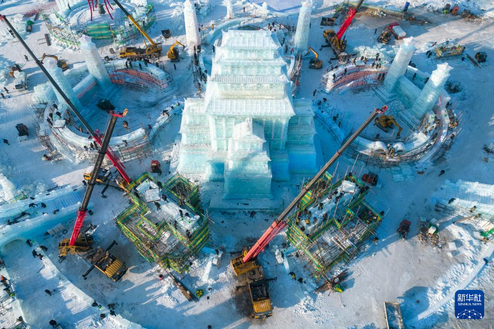 以“龙腾冰雪 逐梦亚冬”为主题的第二十五届哈尔滨冰雪大世界将于12月18日开园迎客。目前在园区内,林立的塔吊、穿梭的机械交织成一首忙碌的建设“交响曲”。本届哈尔滨冰雪大世界将使用25万立方米的冰和雪,倾力打造一个梦幻精彩的冰雪童话世界。