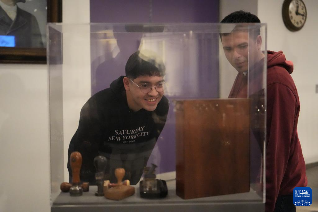 11月8日晚,一名观众在位于阿根廷布宜诺斯艾利斯自由宫内的邮票博物馆参观。